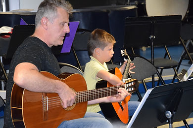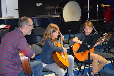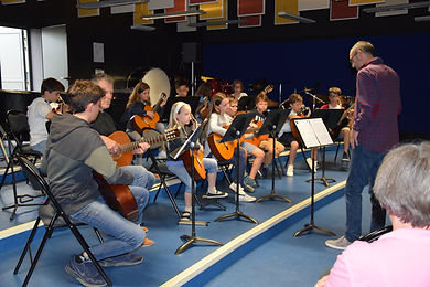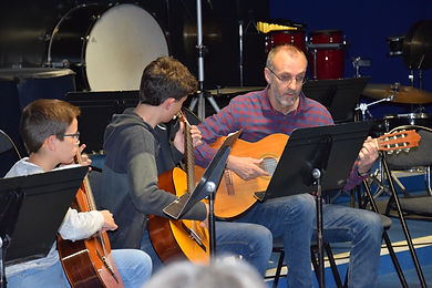 Après la prestation de Chloé au violon, accompagnée de son papa à la guitare Basse, place à la guitare présentée dans des formations à taille variable, allant du duo au grand ensemble d’une vingtaine d’instrumentistes.