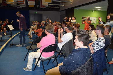 Le public, se prêtant au jeu des questions de Florent, le professeur, a vraiment apprécié ce moment musical très rythmé mais non moins musical.