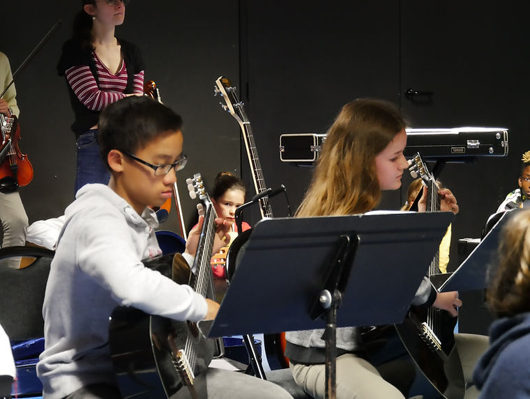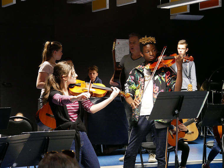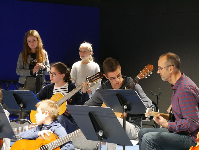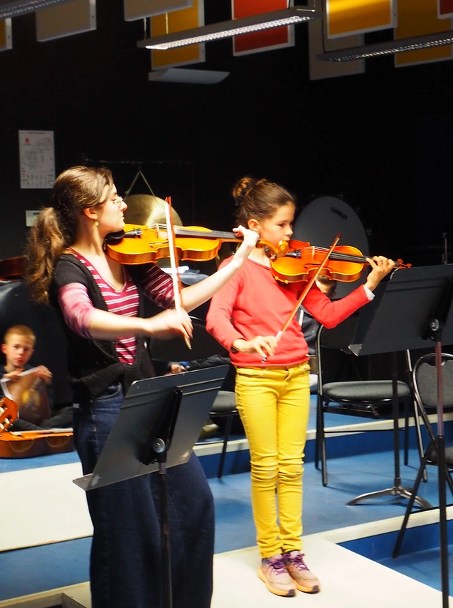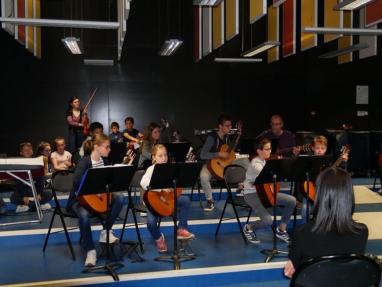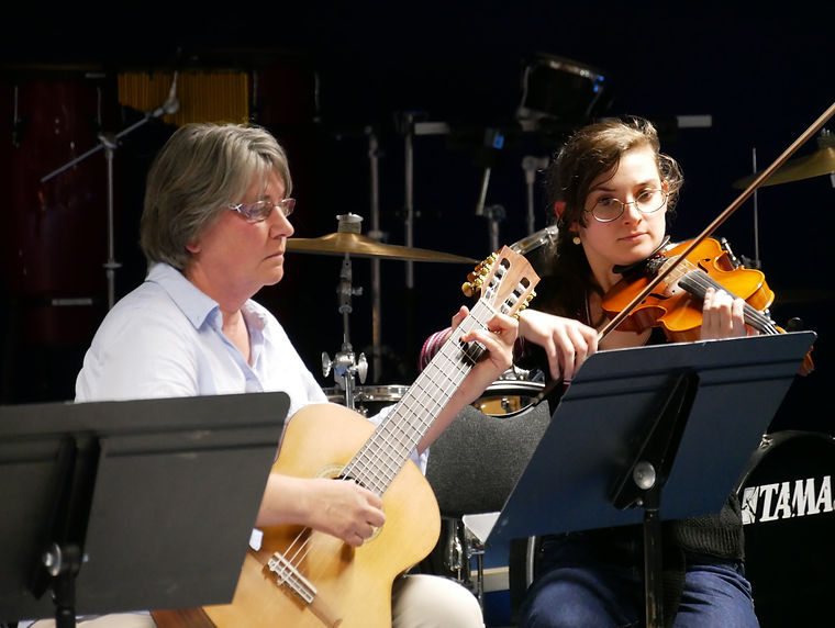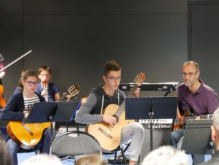 De la prestation soliste à celle de l'ensemble des élèves, les formations à géométrie variable se sont succédées, alternant les interventions des violons et des guitares.