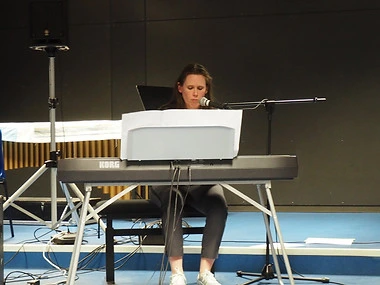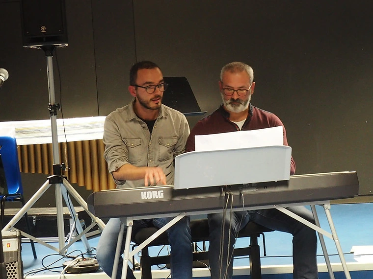 Florent, professeur de piano, animait un temps musical autour des musiques actuelles.